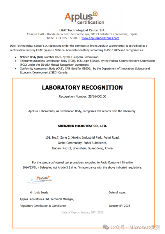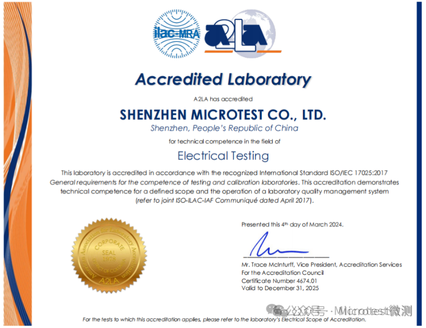 權(quán)威認(rèn)證彰顯實(shí)力: Microtest微測(cè)檢測(cè)已成功通過(guò)國(guó)際知名認(rèn)證機(jī)構(gòu)Applus針對(duì)EN 18031系列標(biāo)準(zhǔn)的嚴(yán)格審核,獲得相應(yīng)資質(zhì)。同時(shí),其網(wǎng)絡(luò)安全實(shí)驗(yàn)室依據(jù)EN 18031系列標(biāo)準(zhǔn)進(jìn)行的能力范圍,也已通過(guò)美國(guó)A2LA(American Association for Laboratory Accreditation)依據(jù)ISO/IEC 17025標(biāo)準(zhǔn)的國(guó)際技術(shù)評(píng)審,這標(biāo)志著Microtest在該領(lǐng)域的檢測(cè)能力獲得國(guó)際權(quán)威認(rèn)可。